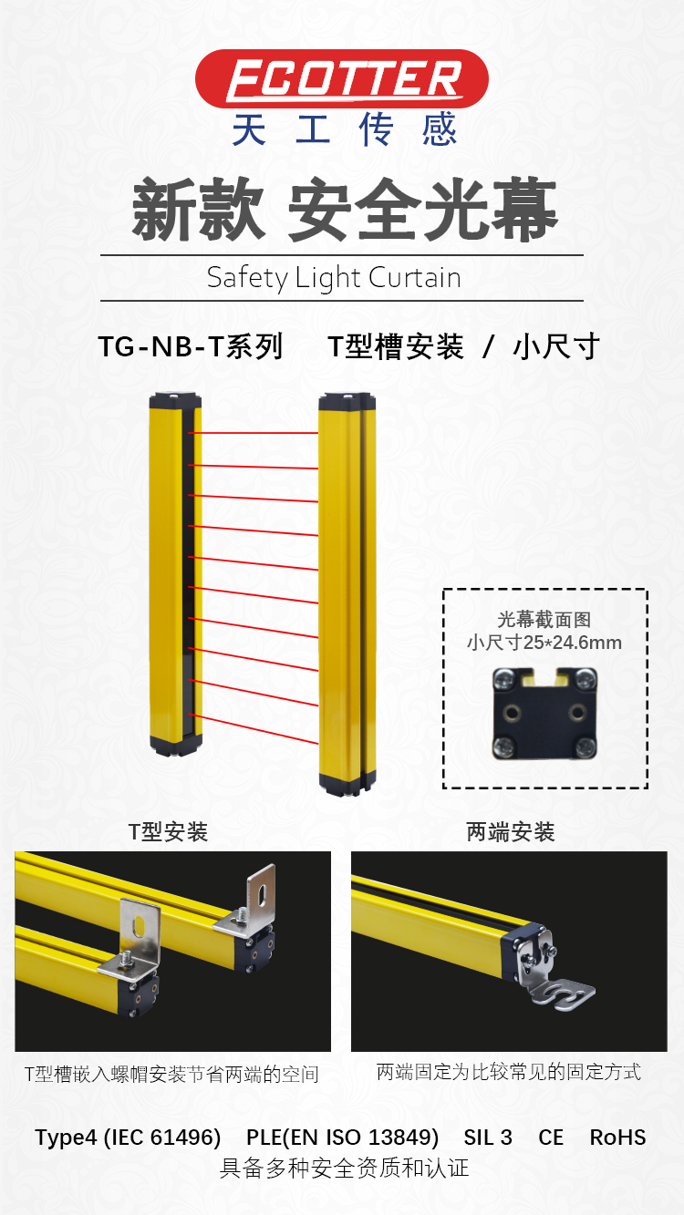 ECOTTER 新型安全光幕小尺寸T型安裝